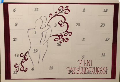 Pieni parisuhdekurssi sisältää 24 erilaista luukuista avautuvaa tehtävää ja keskustelun avausta. Pienen parisuhdekurssin voi ottaa käyttöön esim. kesälomalla tai minä vuodenaikana tahansa piristämään parisuhdetta ja lisäämään positiivista vuorovaikutusta puolisoiden välillä. Pientä parisuhdekurssia voi tehdä myös avaamalla yhden luukun viikossa, jolloin kurssi kestää n. puoli vuotta tai läpi vuoden avaamalla kaksi luukkua kuukaudessa.